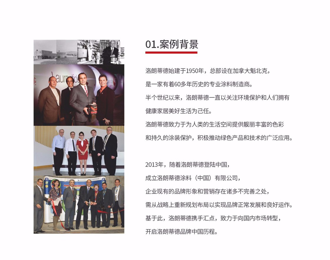洛朗蒂德始建于1950年,总部设在加拿大魁北克,是一家有着60多年历史的专业涂料制造商。2013年,随着洛朗蒂德登陆中国,成立洛朗蒂德涂料(中国)有限公司,企业现有的品牌形象和营销存在诸多不完善之处,需从战略上重新规划布局以实现品牌正常发展和良好运作。基于此,洛朗蒂德携手汇点品牌策划设计公司,致力于...