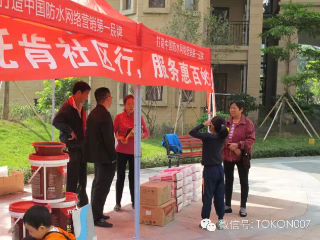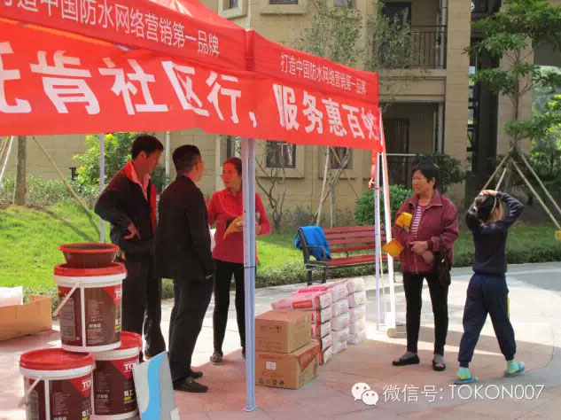 在活动进行的3天中,众多小区业主前来了解托肯的产品,询问防水、瓷砖胶的装修知识;也有多个正在施工的装修公司商洽长期合作事宜!